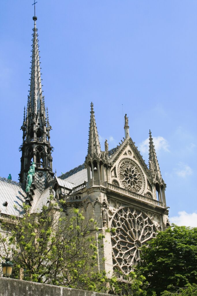 Katedra Notre-Dame w Paryżu to arcydzieło gotyckiej architektury, które zachwyca zarówno bogactwem detali, jak i niezwykle burzliwą historią sięgającą XII wieku. Jej majestatyczna fasada z charakterystycznymi rozetami, maswerkami i rzeźbionymi portalami przedstawia liczne biblijne sceny i figury świętych, co stanowi kwintesencję gotyckiego dążenia do podkreślenia duchowości poprzez symbolikę i przepych form. Imponujące, ostrołukowe sklepienia, witraże wypełniające wnętrze grą barwnego światła oraz misternie zdobione przypory i gargulce stanowią wyraz wyjątkowego kunsztu dawnych rzemieślników i architektów.